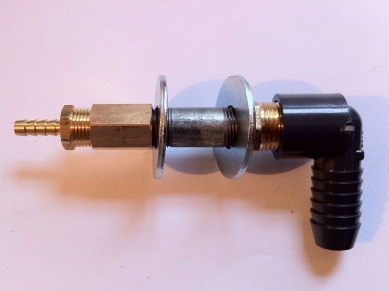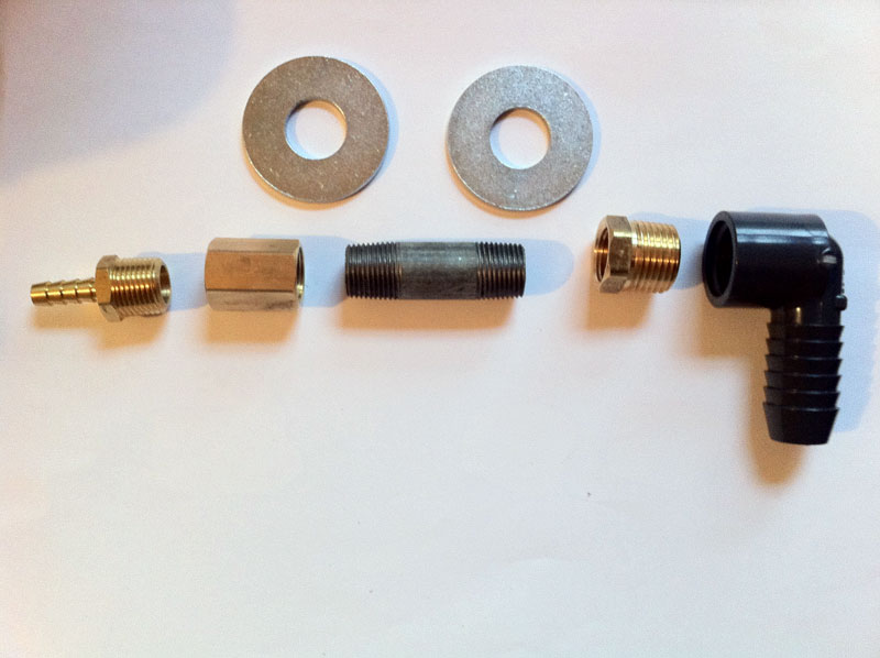 I went to home depot to get the parts to go through the walls of the cooler. From left to right they are: