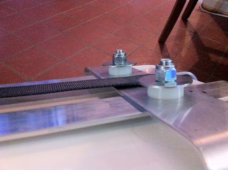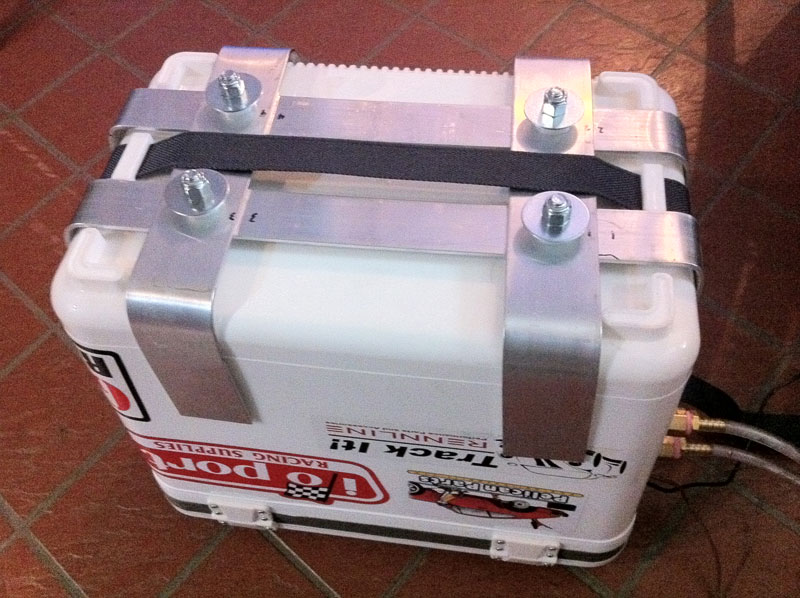 I bought some aluminum flat stock from Home Depot. It's inexpensive and came in all sorts of lenghts and widths. I got 4 feet of the 1 1/2 by 1/8 stock and 3 feet of the 2 by 1/8 stock. It was easy enough to cut with a hacksaw. Here it is laid across the base of the cooler. http://dorkiphus.net/porsche/attachm...chmentid=27595 To bend it, I used a propane torch, a C clamp, and some scraps of plywood and a pair of vice grips. It made a decent impromptu press break. I had to heat the aluminum for about 30 seconds to make it reasonable to bend. http://dorkiphus.net/porsche/attachm...chmentid=27596 Then I drilled a few holes and bound it all together. http://dorkiphus.net/porsche/attachm...chmentid=27597 And here is a close up of the base. As you can see, I'm taking advantage of the strap provided with the cooler to lash it too the base securely. The spacer will give enough rise to get over the uneven floorboards. The flat washers should keep it from pulling through the thin sheet metal. http://dorkiphus.net/porsche/attachm...chmentid=27598 I think it should pass tech without concern and can be removed quickly with 4 bolts if it interferes with the passenger. What do you think? |