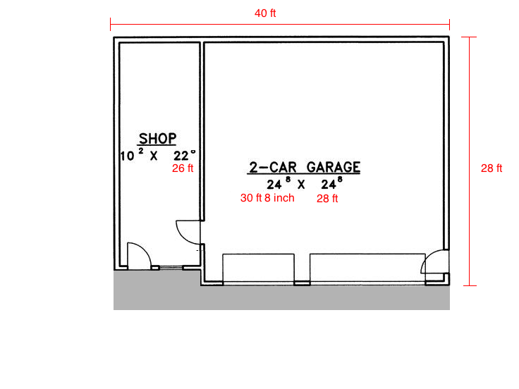 So I am getting the paperwork together this week to get the ball rolling on the permits for the new garage. Timeline is looking like 2-3 months for the variance to pass then a couple weeks for permits. Hoping to start building next vacation. 28x36 or 28x40 is what I am looking at building so 1000-1100sqft. Large workshop with atleast a 25x25 2 car garage. Ive made the changed to the pic for my 28x40 in red. Either way it should fit the lines of the house nicely and still have room to grow.