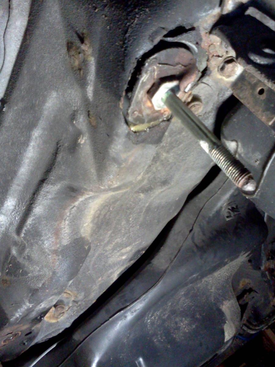 I took the subframe out to replace the bushings. Some sheet metal fell down and this was revealed.