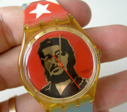 The irony of Che's iconic image on a cheap-assed swatch, along with the hands coming out of his nose, has always struck me as tremendously funny. I saw it while I lived in Europe and funds were tight, and I assumed, incorrectly, that I would be able to find one once I moved back to the states. Oh well. Still good for a chuckle. Can you say pwned? Oh well, at least his watch has hands still . . .
