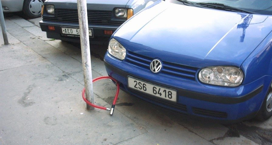 Is this a fail? or a win? Bike lock through the tow hook actually seems like it would work well, assuming the pole is sturdy enough.