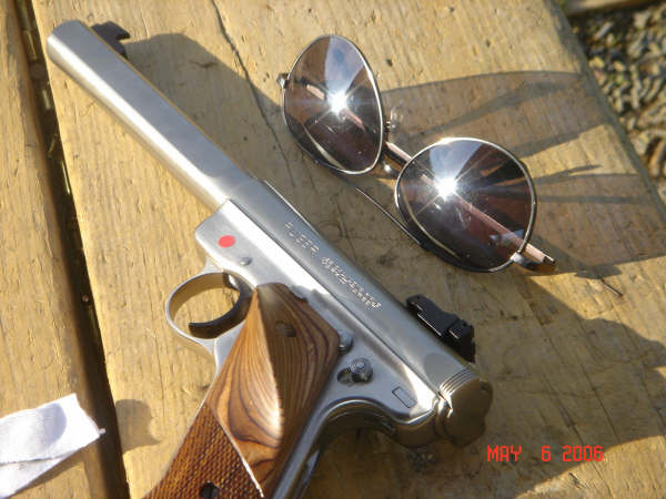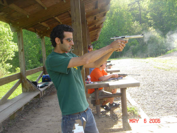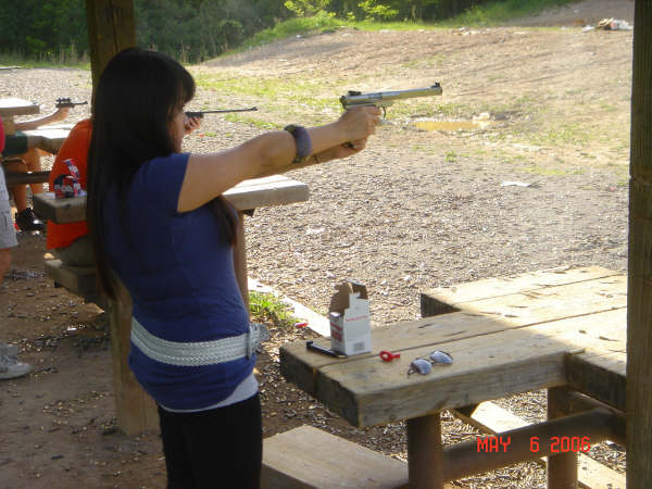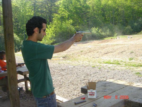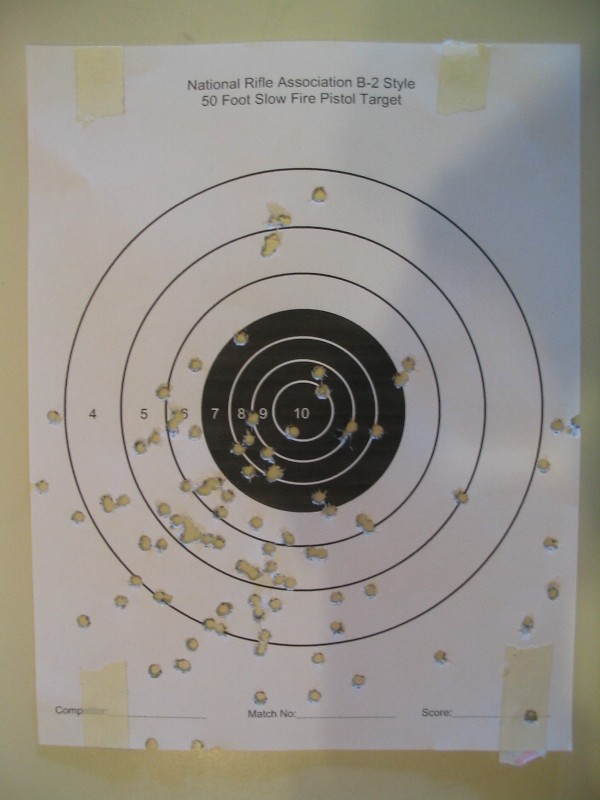 You down @ VT? Looks an awfull lot like the range in the jefferson natl forest down there. If so, I think the target is @ 50yds not 50'. 50' is a peice of cake w/ a .22. I used to be able to shoot 8-10" groups w/ the 357 @ 50yds. The front sight is wider than the whole target.